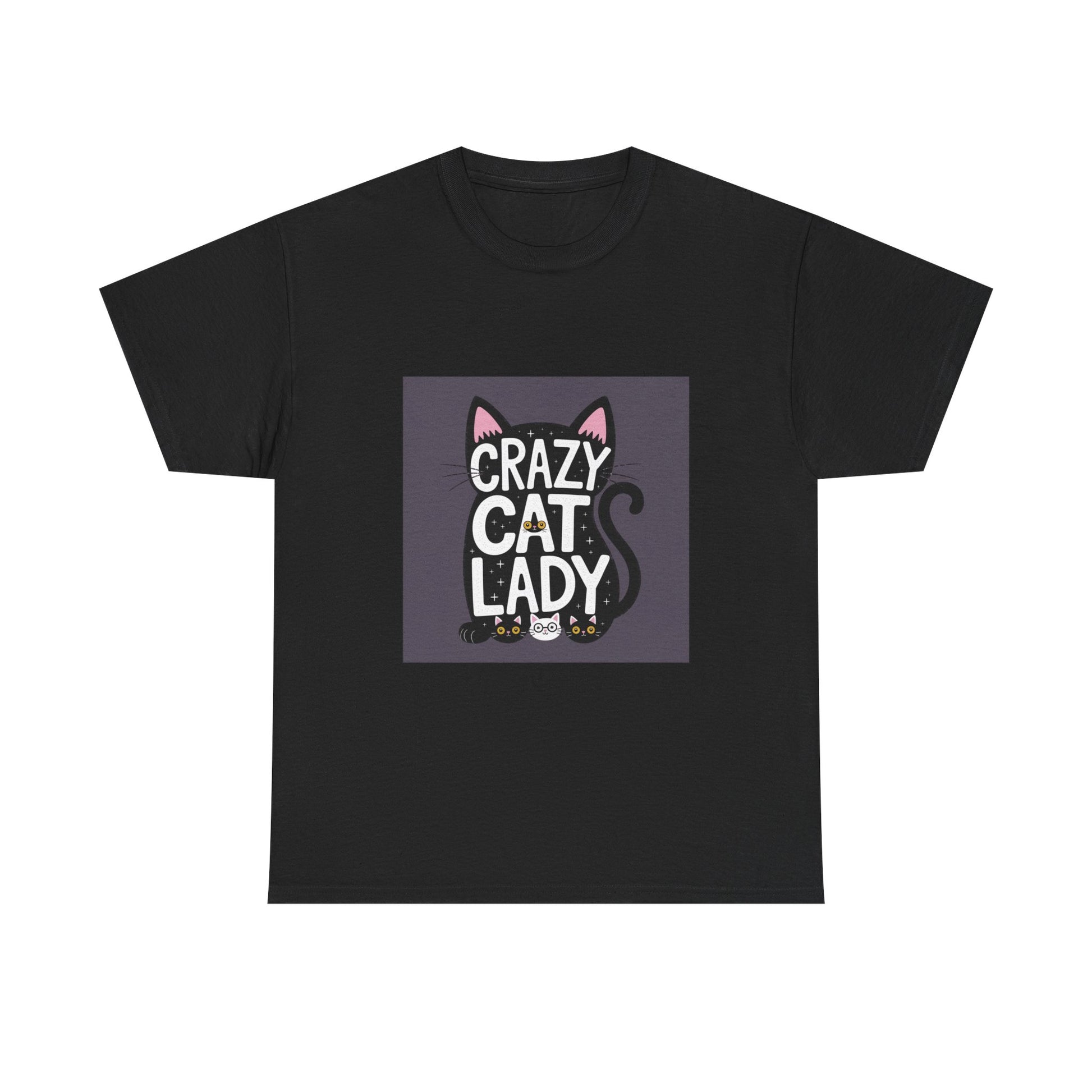 Crazy Cat Lady Unisex Heavy Cotton Tee | Cat Lover Gift, Quirky T-Shirt, Feline Fanatic Apparel, Funny Cat Humor, Gift for Cat Mom