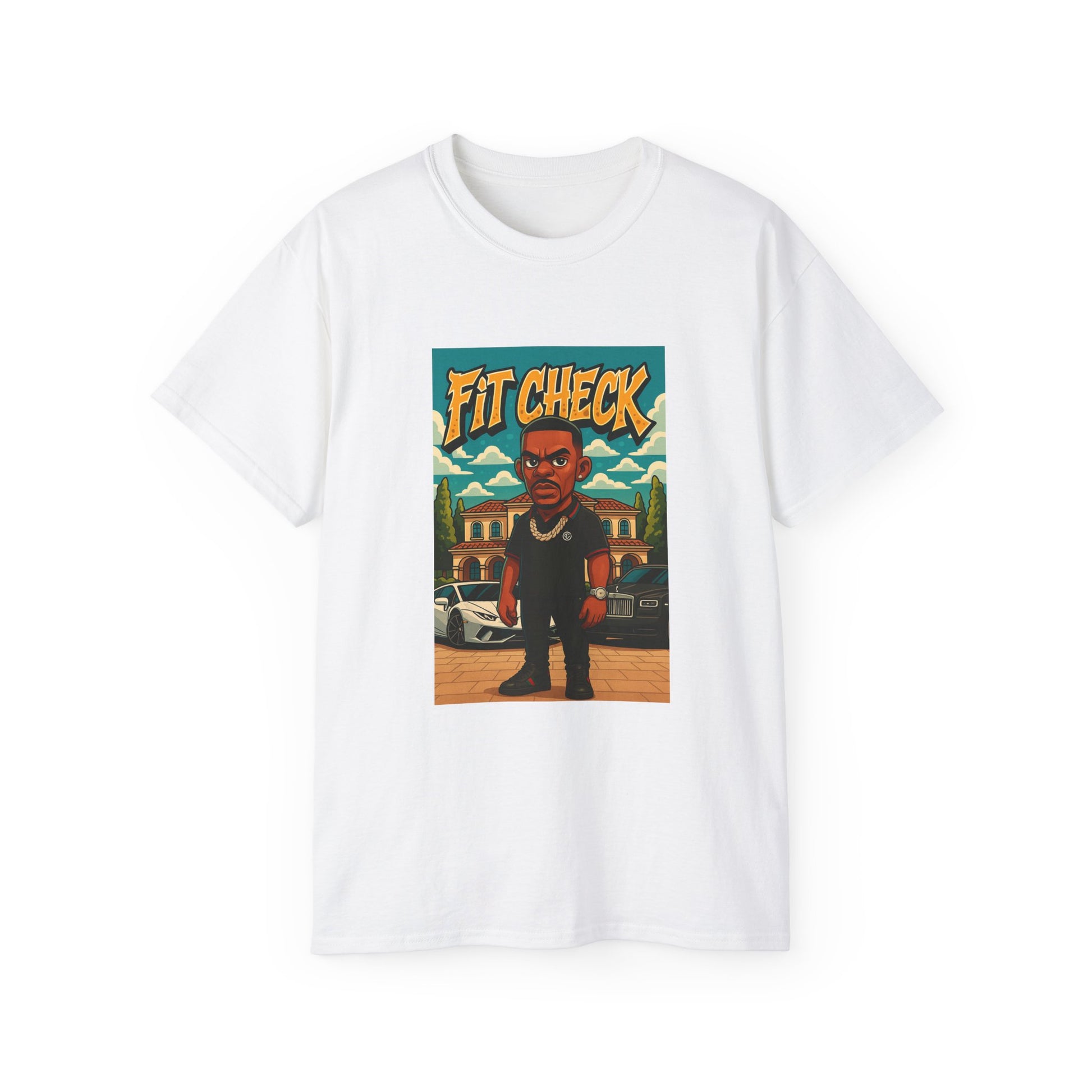Fit Check Cartoon Graphic T-Shirt | Unisex Cotton Tee for Casual Style, Perfect Gift, Streetwear, Trendy Outfit