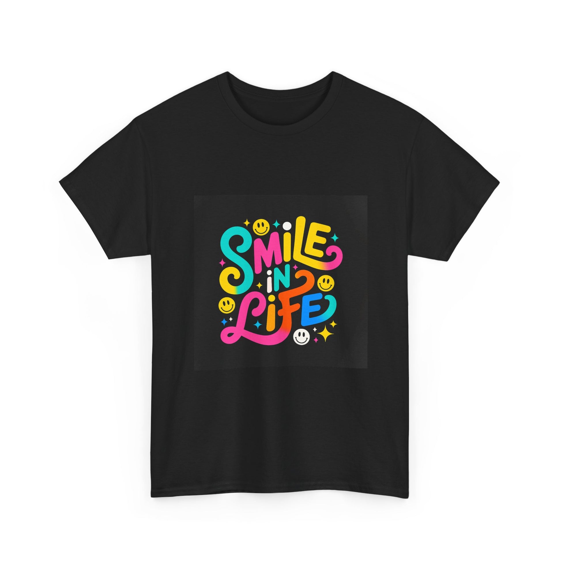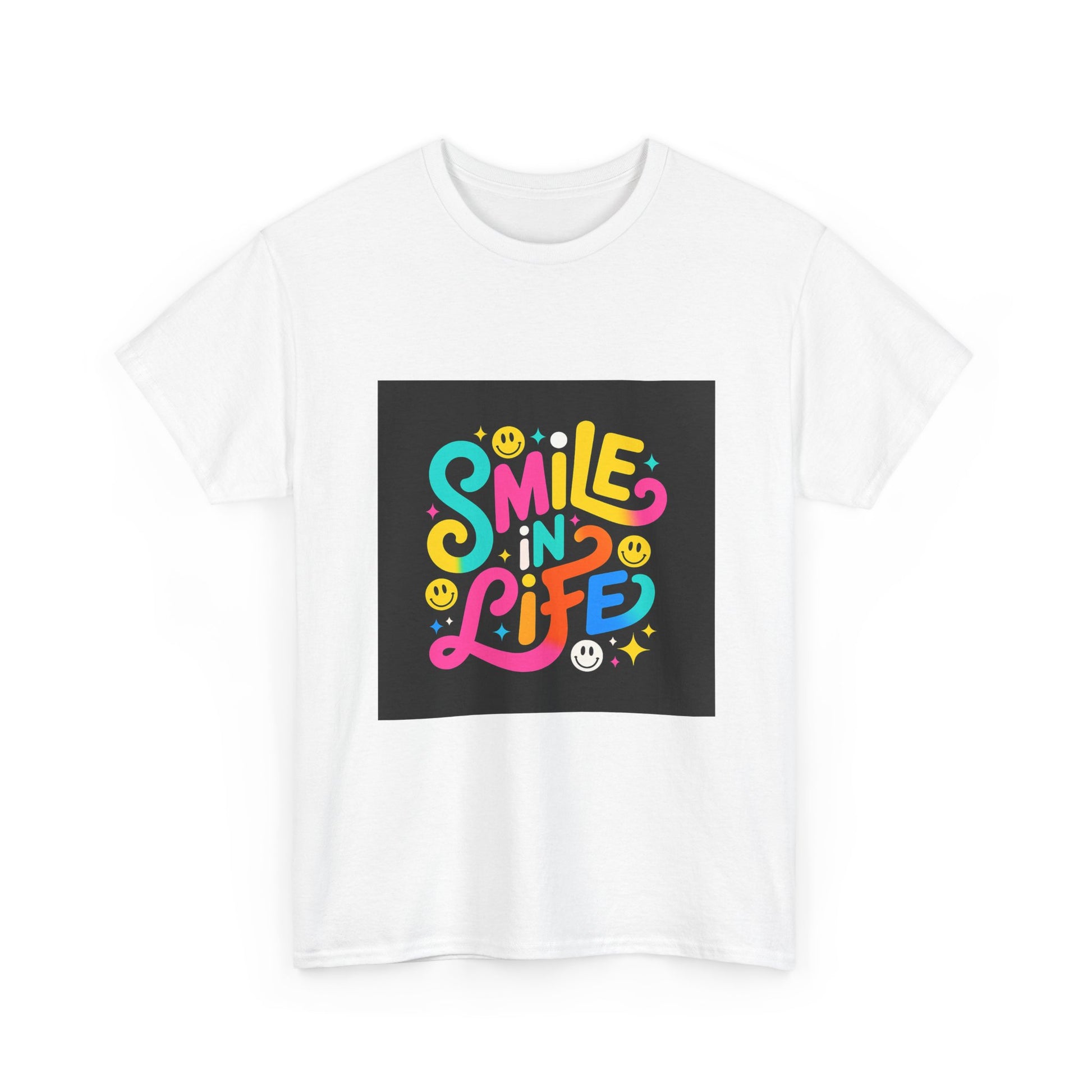 Introducing our Unisex Heavy Cotton Tee, designed to spread positivity and joy. Featuring a vibrant, eye-catching print that says 'Smile in Life', this tee embodies a carefree spirit and brightens any day. Made from high-quality cotton, it’s soft yet durable, suitable for everyday wear or special occasions. Perfect for casual outings, gatherings with friends, or simply lounging at home, this shirt fits seamlessly into your life. It’s an ideal gift for anyone who loves uplifting messages or wants to inspire happiness in others. Great for birthdays, holidays, or just to brighten someone’s day!