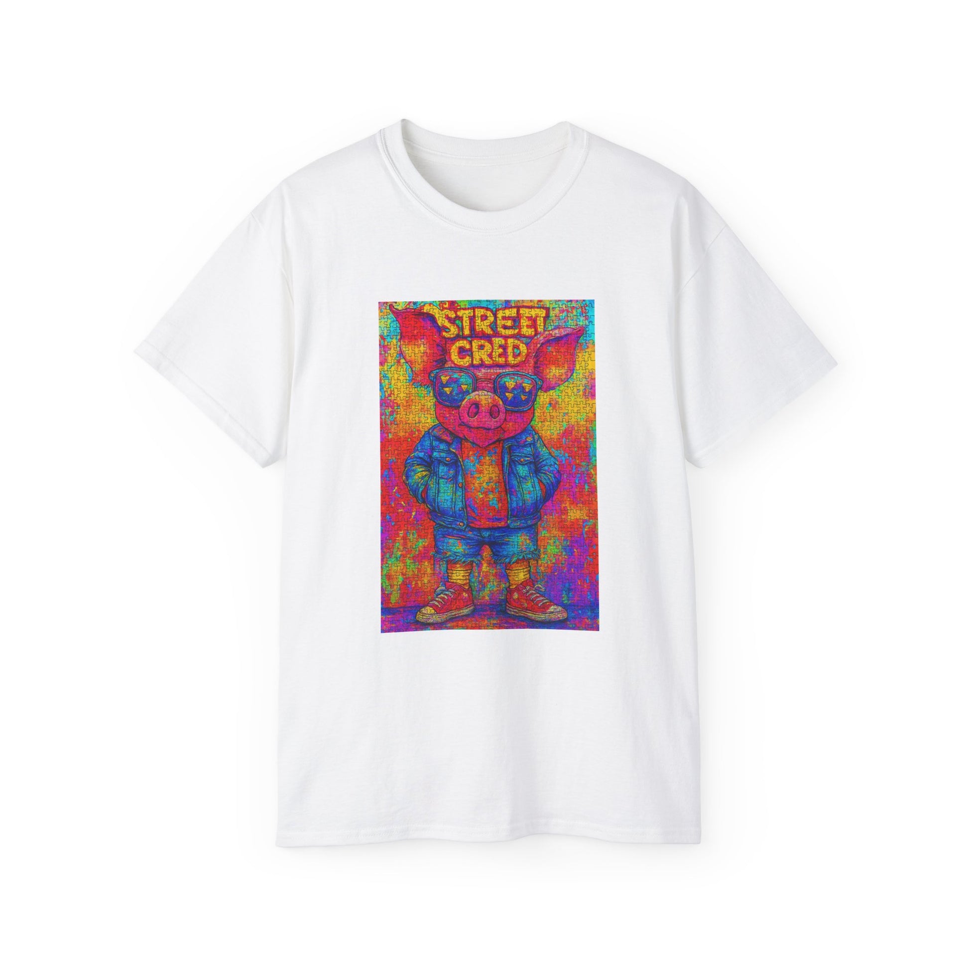 Vibrant Street Cred Tee | Funky Art T-Shirt, Unisex Casual Wear, Gift for Artists, Fun Fashion, Streetwear Style